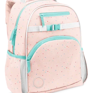 School Ready: Features a padded tablet sleeve, a large zip-closure front pocket, a zip-closure stash pocket, easily adjustable straps, and two expandable bottle sleeves on the sides.