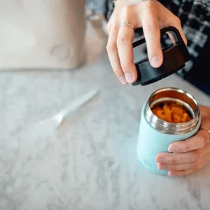 Double Wall Insulation:This wide-mouth reusable snack container will never sweat or be hot to the touch. The lid is double-walled for complete insulation.